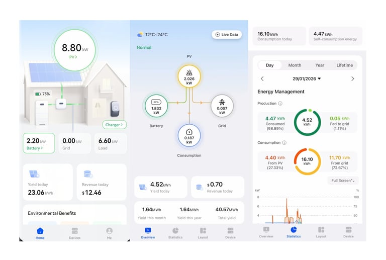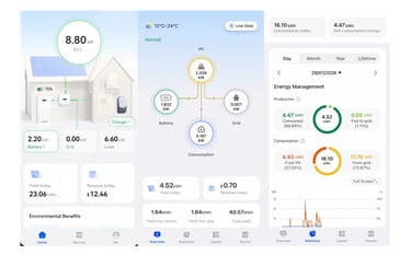 Con FusionSolar, gestione su energía de forma visual e intuitiva. Seleccione entre modos de autoconsumo, horarios con precios variables o inyección a la red, y decida cuándo consumir, almacenar o vender su electricidad.